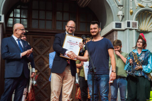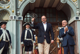 Gdańsk, przedproże Dworu Artusa. Ceremonia zakończenia Jarmarku Św. Dominika 2017