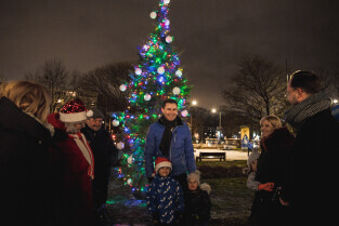 Gdańsk, Wrzeszcz Górny, Plac Czerwonych Gitar. Choinka dzielnicowa - Wrzeszcz Górny