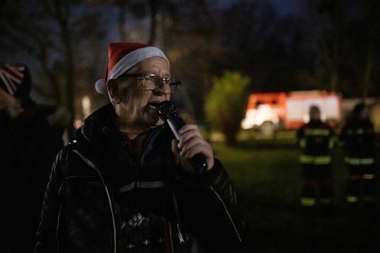 Gdańsk, Wyspa Sobieszewska. Rozświetlenie choinki dzielnicowej. W wydarzeniu udział wziął Piotr Grzelak, Zastępca Prezydenta Gdańska ds. zrównoważonego rozwoju i gospodarki.