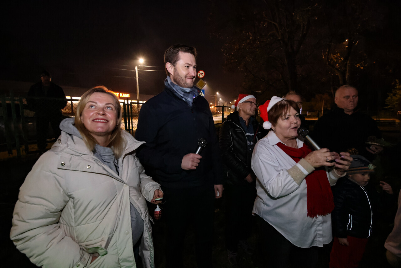 Gdańsk, Wyspa Sobieszewska. Rozświetlenie choinki dzielnicowej. W wydarzeniu udział wziął Piotr Grzelak, Zastępca Prezydenta Gdańska ds. zrównoważonego rozwoju i gospodarki.