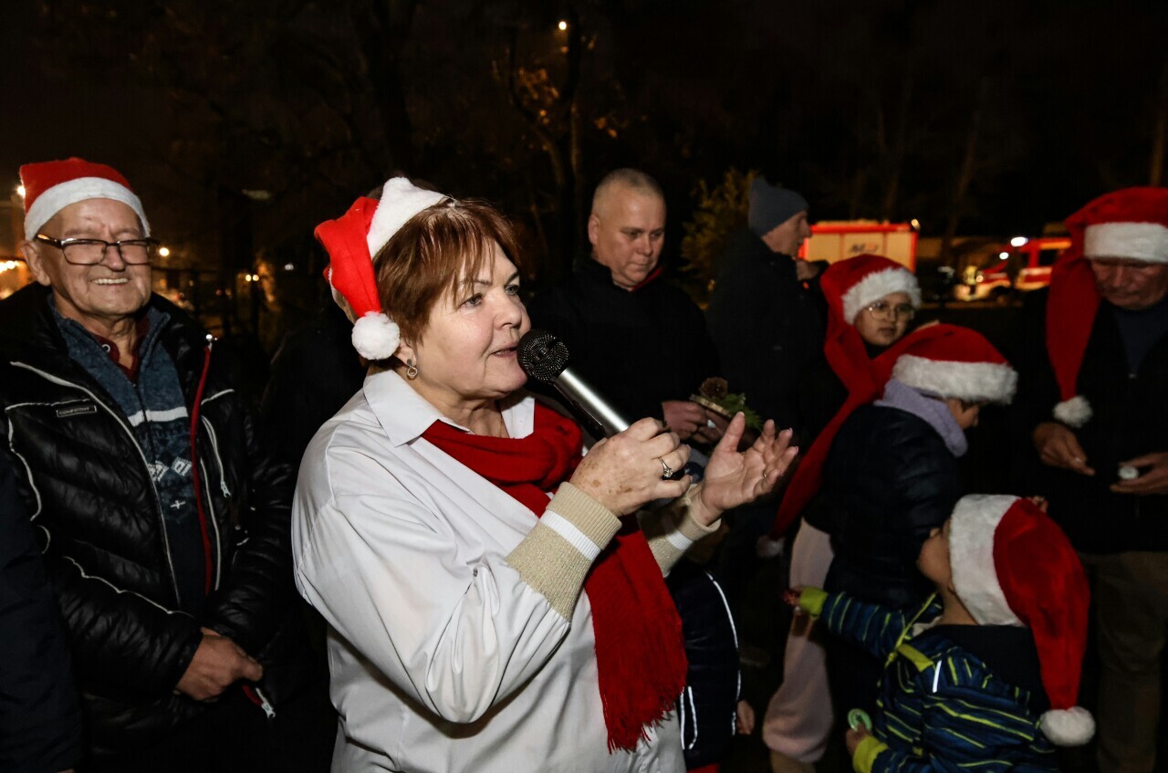 Gdańsk, Wyspa Sobieszewska. Rozświetlenie choinki dzielnicowej. W wydarzeniu udział wziął Piotr Grzelak, Zastępca Prezydenta Gdańska ds. zrównoważonego rozwoju i gospodarki.