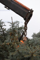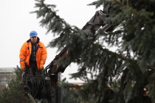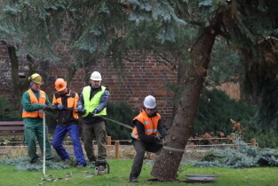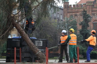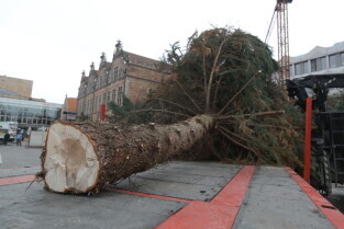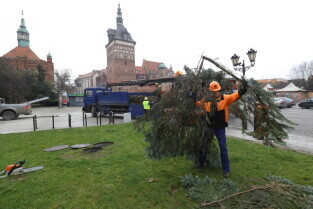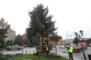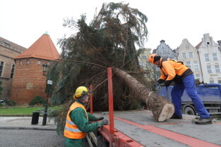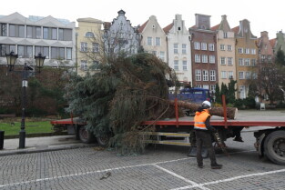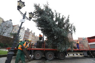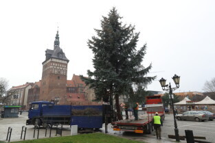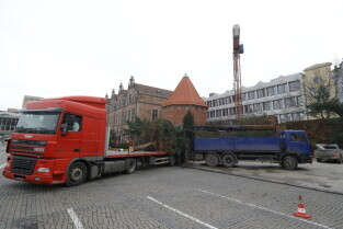 Gdańsk, Targ Węglowy. Stawianie świątecznej choinki.