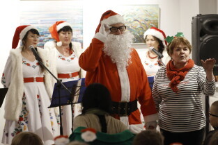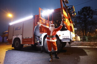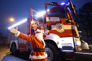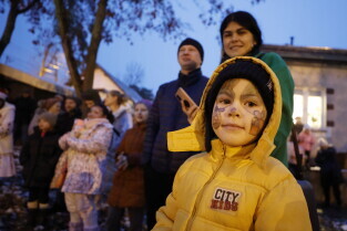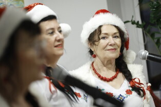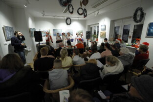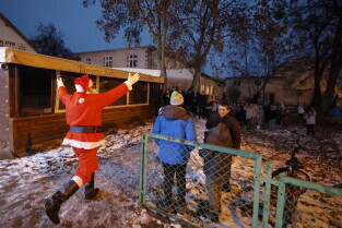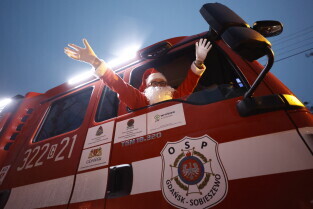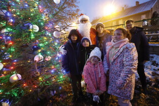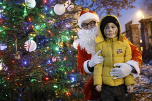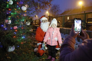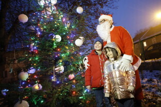 Gdańsk. Choinka w Sobieszewie zapalenie światełek na świątecznym drzewku.