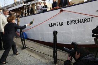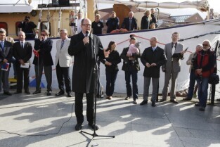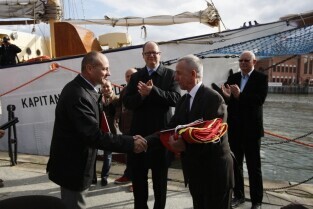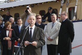 Chrzest żaglowca Kapitan Borchardt, którego matką chrzestną została Maria Wypych-Namiotko, Podsekretarz Stanu w Ministerstwie Infrastruktury. Żaglowiec to trzymasztowy szkuner gaflowy wybudowany w Holandii w 1918 roku jako oceaniczny statek towarowy.