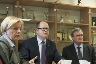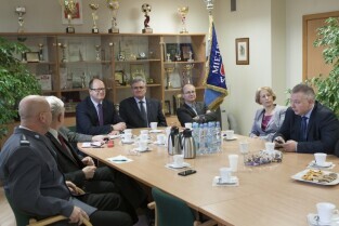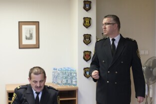 Coroczne spotkanie Prezydenta Gdańska Pawła Adamowicza i jego zastępców z kierownictwem Straży Miejskiej w Gdańsku. Podsumowanie działań w 2013 roku oraz omówienie planów na rok 2014. Gdańsk, siedziba Straży Miejskiej przy ul. Elbląskiej. Nz. Dyrektor Wydziału Zarządzania Kryzysowego UMG Tadeusz Bukontt i Komendant Miejski Policji w Gdańsku insp. Zbigniew Pakuła