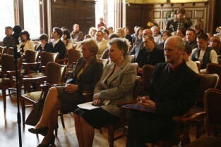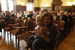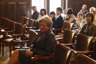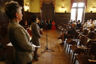 Gdańsk, Nowy Ratusz. Coroczne spotkanie repatriantów, którzy osiedlili się w Gdańsku na zaproszenie władz miasta. W spotkaniu wzięła udział Sekretarz Miasta Danuta Janczarek