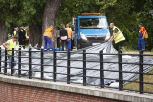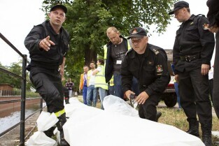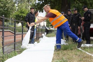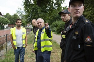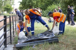 Gdańsk Orunia, Kanał Raduni. Ćwiczenia związane z ochroną przeciwpowodziową. Nz. Prezydent Gdańska Paweł Adamowicz