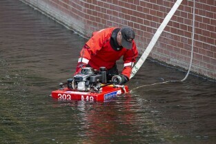 Gdańsk Orunia, Kanał Raduni. Ćwiczenia związane z ochroną przeciwpowodziową. Nz. Dyrektor ds. Eksploatacji spółki Gdańskie Wody Leszek Zakrzewski