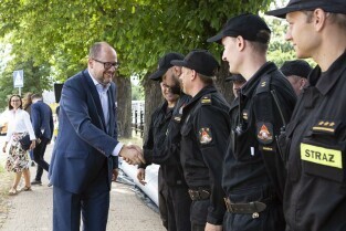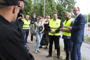 Gdańsk Orunia, Kanał Raduni. Ćwiczenia związane z ochroną przeciwpowodziową. Nz. Z-ca Prezydenta Gdańska Piotr Grzelak i Z-ca Dyrektora Wydziału Bezpieczeństwa i Zarządzania Kryzysowego Krzysztof Domagalski