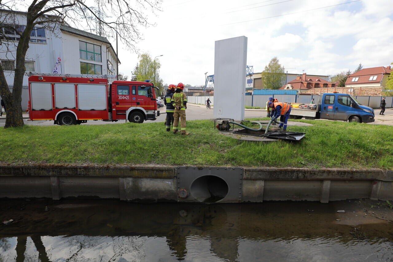 Gdańsk. Ćwiczenia przeciwpowodziowe. Ul. Swojska - na wysokości ul. Twardej i ul. Okrąg (podniesienie poziomu wody w potoku Strzyża spowodowanej cofką a w związku z tym brak możliwości skutecznego odprowadzania wody opadowej z trenów ul. Twardej, Okrąg i Swojskiej – zagrożenie podtopieniami lokalnymi). Działania polegające na ostrzeganiu mieszkańców, ustawieniu pomp i przepompowywaniu wody do kanału Strzyży w celu umożliwienia odpływu wody z ww. ulic. W zawiązku z działaniami i możliwym wystąpieniem wody wykonanie zabezpieczenia działań.