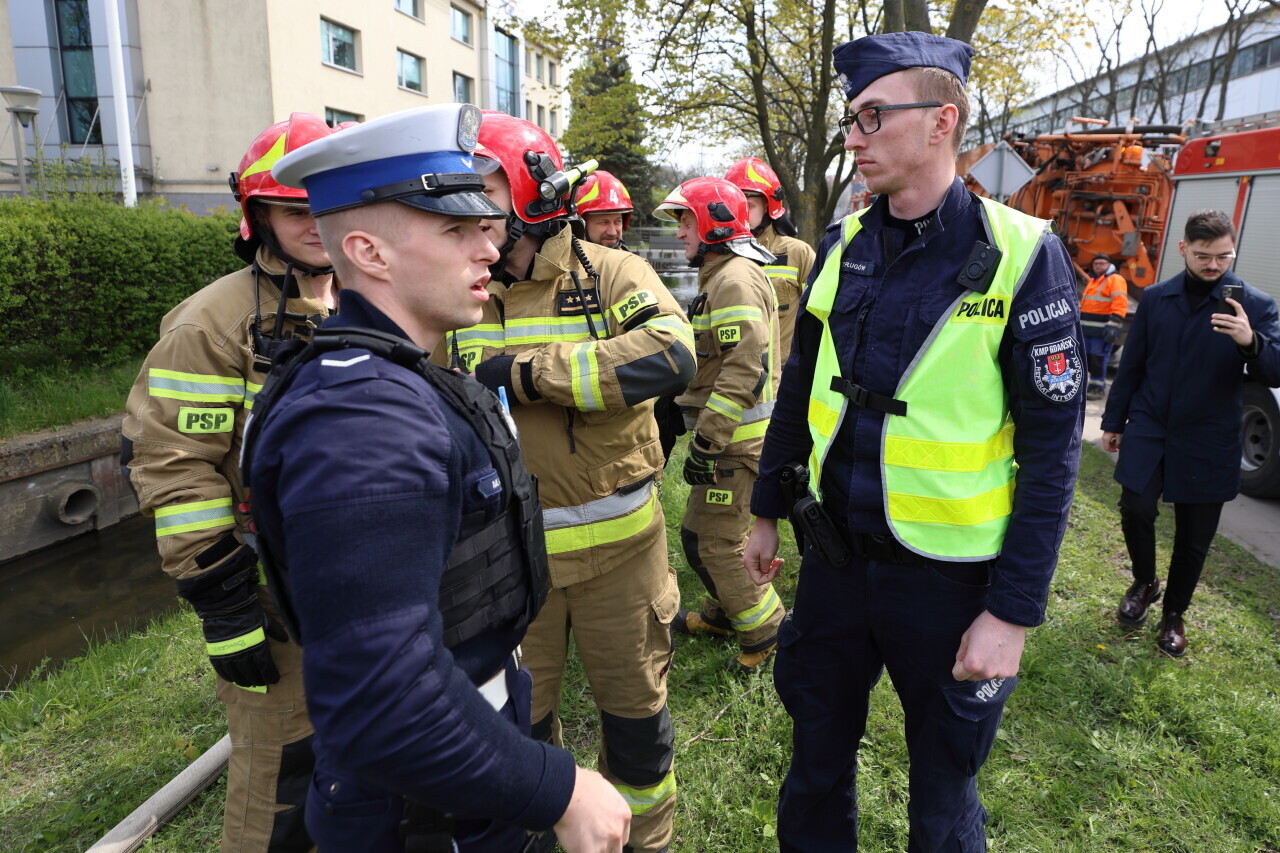 Gdańsk. Ćwiczenia przeciwpowodziowe. Ul. Swojska - na wysokości ul. Twardej i ul. Okrąg (podniesienie poziomu wody w potoku Strzyża spowodowanej cofką a w związku z tym brak możliwości skutecznego odprowadzania wody opadowej z trenów ul. Twardej, Okrąg i Swojskiej – zagrożenie podtopieniami lokalnymi). Działania polegające na ostrzeganiu mieszkańców, ustawieniu pomp i przepompowywaniu wody do kanału Strzyży w celu umożliwienia odpływu wody z ww. ulic. W zawiązku z działaniami i możliwym wystąpieniem wody wykonanie zabezpieczenia działań.