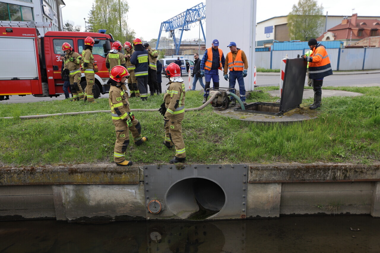 Gdańsk. Ćwiczenia przeciwpowodziowe. Ul. Swojska - na wysokości ul. Twardej i ul. Okrąg (podniesienie poziomu wody w potoku Strzyża spowodowanej cofką a w związku z tym brak możliwości skutecznego odprowadzania wody opadowej z trenów ul. Twardej, Okrąg i Swojskiej – zagrożenie podtopieniami lokalnymi). Działania polegające na ostrzeganiu mieszkańców, ustawieniu pomp i przepompowywaniu wody do kanału Strzyży w celu umożliwienia odpływu wody z ww. ulic. W zawiązku z działaniami i możliwym wystąpieniem wody wykonanie zabezpieczenia działań.