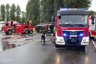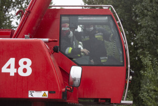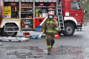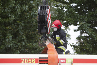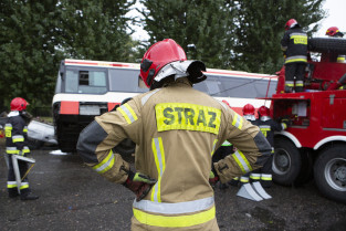 Ćwiczenia straży w zajezdni autobusowej GAiT