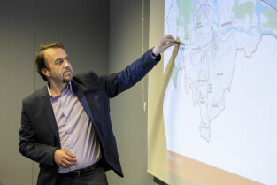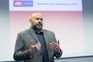 Ćwiczenia związane z ochroną przeciwpowodziową w Gdańsku. Prezentacje w siedzibie Spółki Gdańskie Wody. Nz. Z-ca Dyrektora Wydziału Bezpieczeństwa i Zarządzania Kryzysowego Krzysztof Domagalski