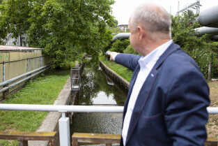 Ćwiczenia związane z ochroną przeciwpowodziową w Gdańsku. Prezentacje w siedzibie Spółki Gdańskie Wody. Nz. Prezes Gdańskie Wody Sp. z o.o. Ryszard Gajewski