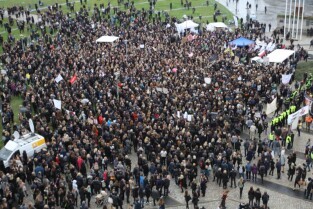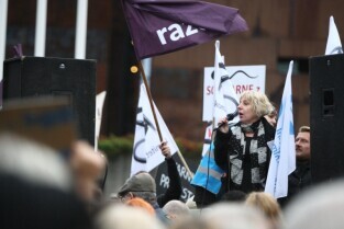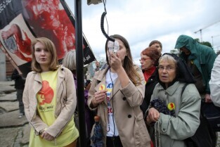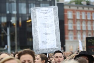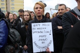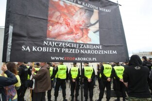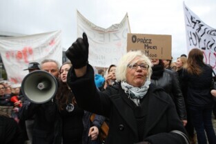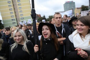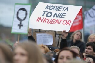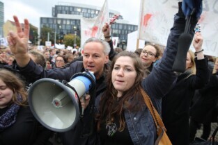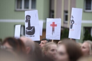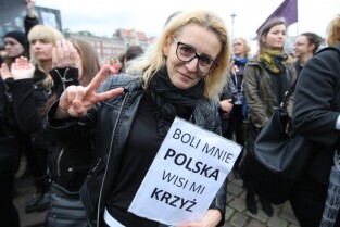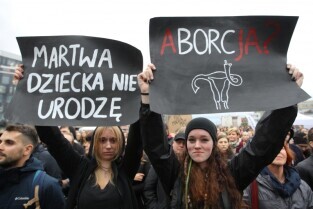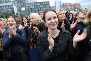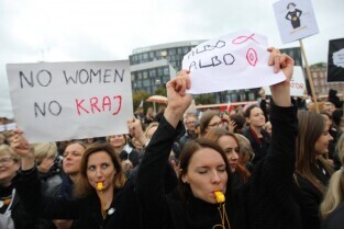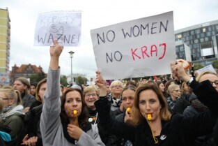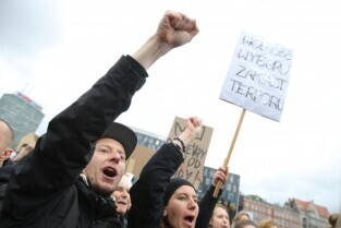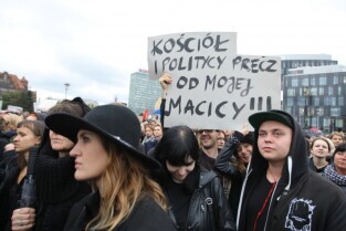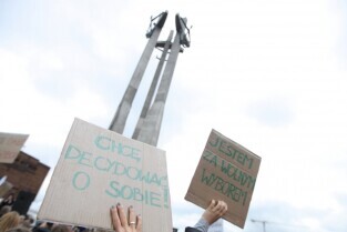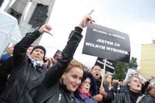 Gdańsk Pomnik Poległych Stoczniowców. Protest w Gdańsku przeciwko restrykcyjnej ustawie antyaborcyjnej.