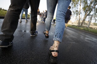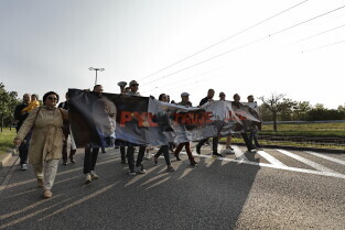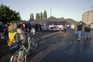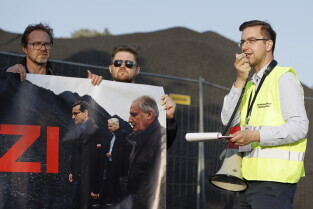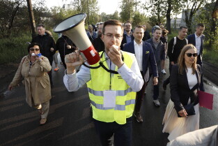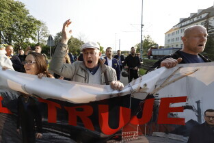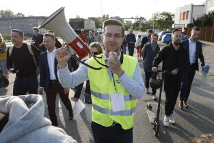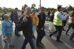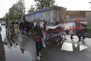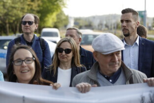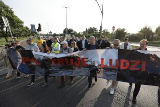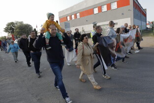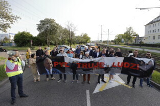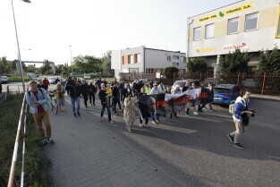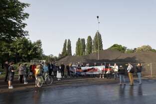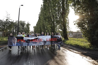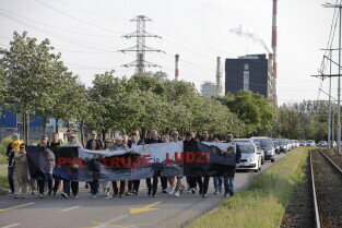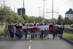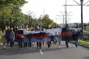 Gdańsk. Czarny protest w Nowym Porcie. Marsz przeciwko pyleniu z hałd węgla składowanych w porcie.