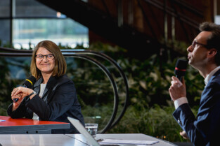 Gdańsk. Czas globalizacji. Europa w obronie obywateli - debata w ECS. Nz. Edwin Bendyk i Katarzyna Szymielewicz