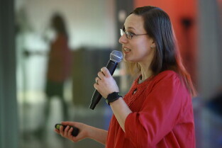 Gdańsk. Czasoprzestrzeń miłości - wykład dr. Agaty Kołodziejczyk w Hevelianum. Nz. Dr. Agata Kołodziejczyk – astrobiolog i neurobiolog z Analog Astronaut Training Center, trenerka astronautów i badaczka przyszłych warunków życia ludzi na Księżycu, naukowiec Europejskiej Agencji Kosmicznej.