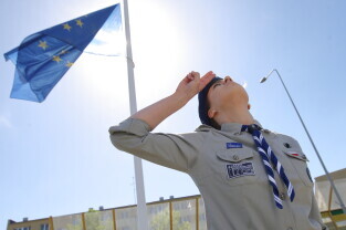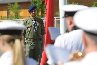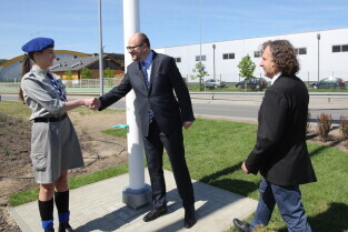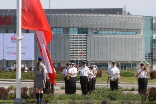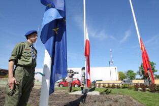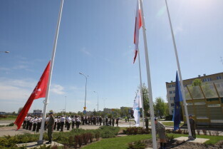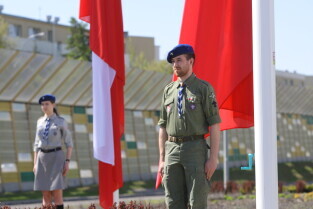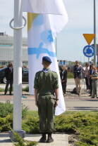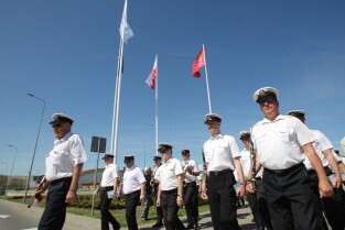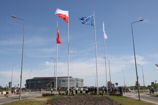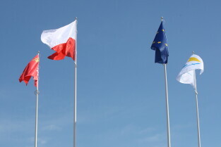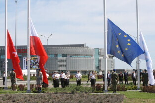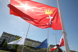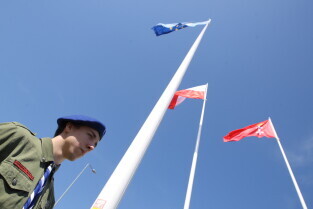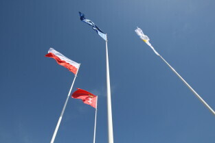 Gdańsk. Wciągnięcie czterech flag na 100-lecie Niepodległości Polski.