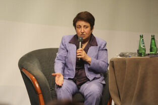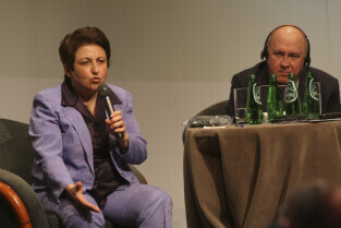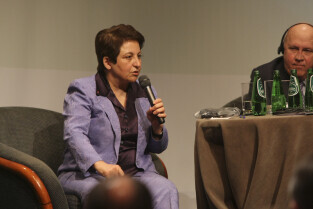 Konferencja Solidarność dla Przyszłości w ramach obchodów 25-lecia przyznania Lechowi Wałęsie Pokojowej Nagrody Nobla. Sesja 1: Czy Globalny Pokój Jest Możliwy. Nz. Shirn Ebadi