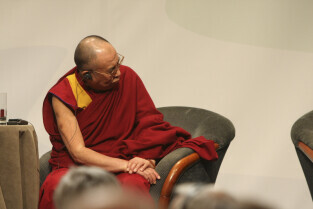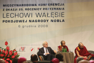 Konferencja Solidarność dla Przyszłości w ramach obchodów 25-lecia przyznania Lechowi Wałęsie Pokojowej Nagrody Nobla. Sesja 1: Czy Globalny Pokój Jest Możliwy. Nz. Dalajlama XIV