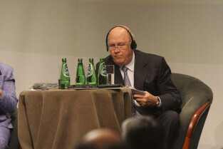 Konferencja Solidarność dla Przyszłości w ramach obchodów 25-lecia przyznania Lechowi Wałęsie Pokojowej Nagrody Nobla. Sesja 1: Czy Globalny Pokój Jest Możliwy. Nz. Andrzej Olechowski
