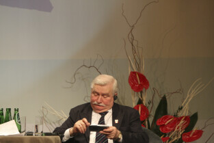 Konferencja Solidarność dla Przyszłości w ramach obchodów 25-lecia przyznania Lechowi Wałęsie Pokojowej Nagrody Nobla. Sesja 1: Czy Globalny Pokój Jest Możliwy. Nz. Lech Wałęsa