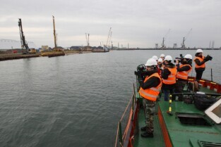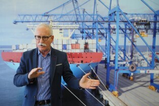 Terminal Kontenerowy DCT, zakończenie palowania nowobudowanej ściany nabrzeża terminalu T2. Nz Maciek Kwiatkowski-Prezes Zarządu DCT Gdańsk