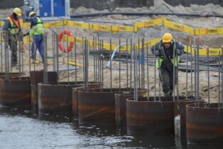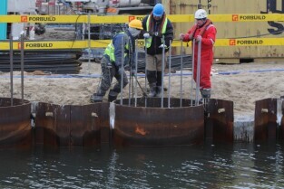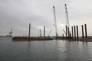 Terminal Kontenerowy DCT, zakończenie palowania nowobudowanej ściany nabrzeża terminalu T2.
