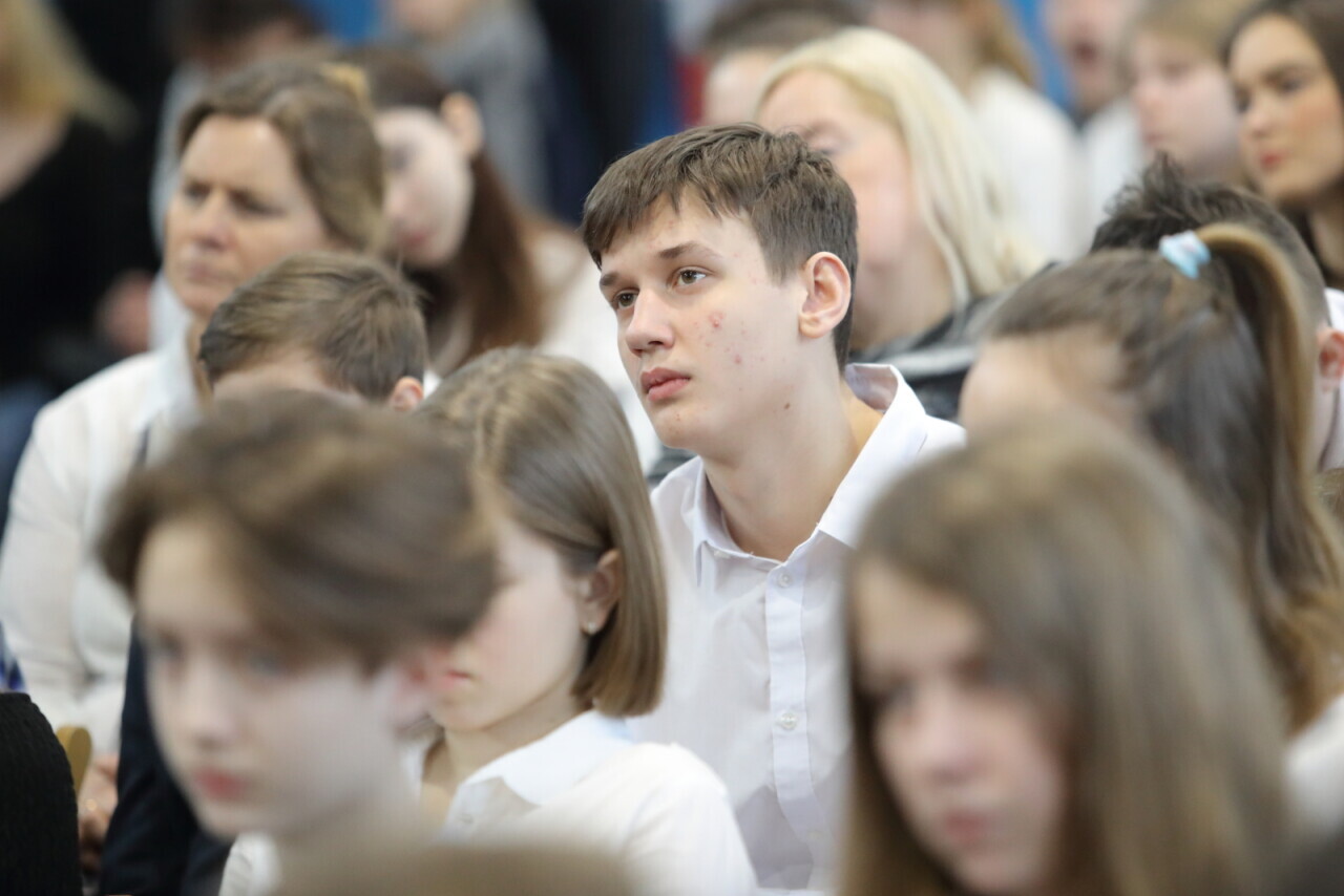 Gdańsk. Debata #POWSTRZYMAJ HEJT w Szkole Podstawowej nr 79. W debacie wzięli udział: Pan Maciej Dębski - Prezes Zarządu Fundacji Dbam o Swój Zasięg, Jacek Tylek – Radca Prawny, Dawid Owłasiuk - młodszy aspirant Komisariatu Policji w Gdańsku i Dyrektor szp 79 Michał Zapolski- Downar.