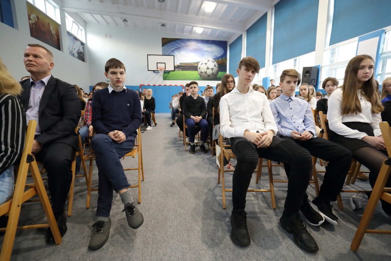 Gdańsk. Debata #POWSTRZYMAJ HEJT w Szkole Podstawowej nr 79. W debacie wzięli udział: Pan Maciej Dębski - Prezes Zarządu Fundacji Dbam o Swój Zasięg, Jacek Tylek – Radca Prawny, Dawid Owłasiuk - młodszy aspirant Komisariatu Policji w Gdańsku i Dyrektor szp 79 Michał Zapolski- Downar.