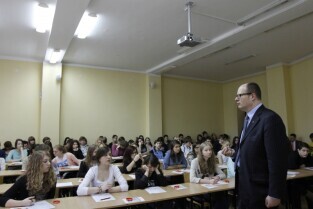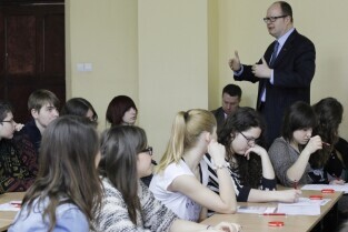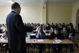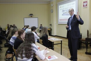 Gdańsk Śródmieście. Debata Prezydenta Gdańska Pawła Adamowicza z uczniami I Liceum Ogólnokształcącego pt. "Jaki będzie Gdańsk w 2030 r.?"