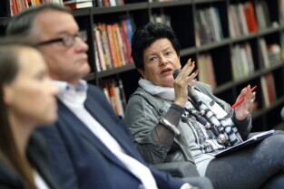 Gdańsk. Debata - Ustawa metropolitalna szansą na dalszy rozwój Pomorza. Dyskusja z kandydatami ubiegającymi się o mandat posła lub senatora. Nz. Prof. Joanna Senyszyn.
