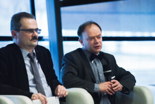 Gdańsk, Europejskie Centrum Solidarności. Debata "20 lat Konstytucji RP". Nz. dr hab. Krzysztof Grajewski, prof. UG, dr hab. Piotr Uziębło, prof. UG