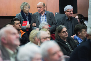 Gdańsk, Europejskie Centrum Solidarności. Debata "20 lat Konstytucji RP". Nz. od lewej, Lech Parell, Mikołaj Chrzan, dr hab. Krzysztof Grajewski, prof. UG
