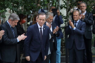 Sopot. Debata i odsłonięcie pomnika prof. Władysława Bartoszewskiego. Nz. Marszałek Senatu Tomasz Grodzki.