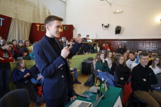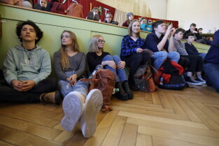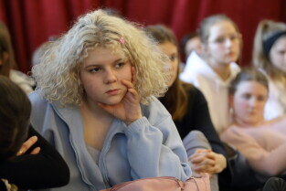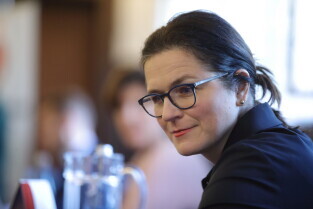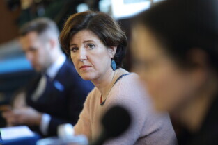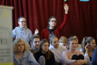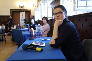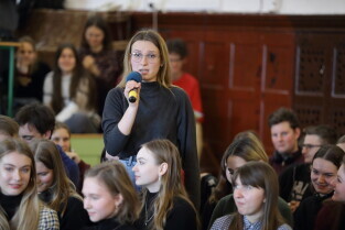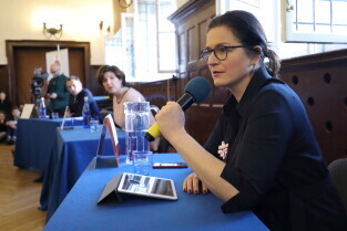 Gdańsk. Debata o praworządności w III LO z udziałem Prezydent Gdańska Aleksandry Dulkiewicz, Posła Jana Kanthaka i Sędzi Jolanty Jeżewskiej. Nz. Prezydent Gdańska Aleksandra Dulkiewicz.