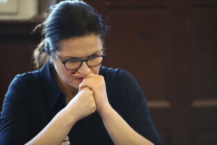 Gdańsk. Debata o praworządności w III LO z udziałem Prezydent Gdańska Aleksandry Dulkiewicz, Posła Jana Kanthaka i Sędzi Jolanty Jeżewskiej. Nz. Sędzia Jolanta Jeżewska.