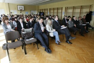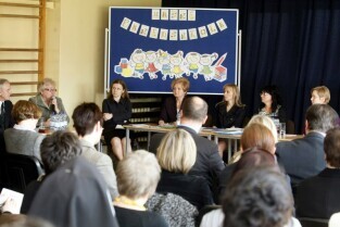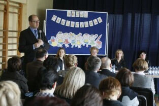 Gdańsk, Morena. Debata na temat przyszłości przedszkoli w Gdańsku z udziałem władz miasta, dyrektorów przedszkoli oraz osób zainteresowanych otwarciem nowych placówek. Nz. Prezydent Gdańska Paweł Adamowicz
