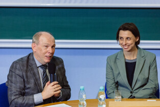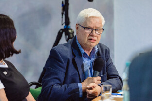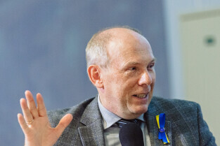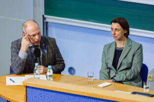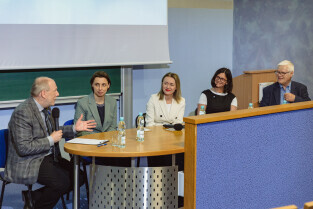 Gdańsk, ul. Bażyńskiego. Debata uczelniana w ramach cyklu Solidarni w rozwoju. Nz. prof. Jerzy Hausner, Przewodniczący Rady Programowej OEES