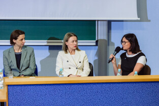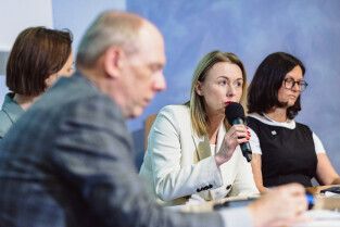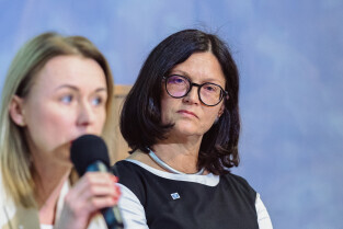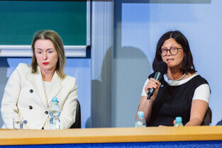 Gdańsk, ul. Bażyńskiego. Debata uczelniana w ramach cyklu Solidarni w rozwoju. Nz. prof. Sylwia Mrozowska, prorektor ds. Współpracy i Rozwoju Uniwersytetu Gdańskiego