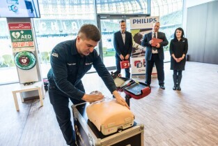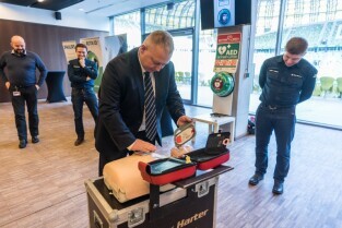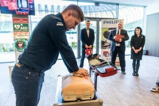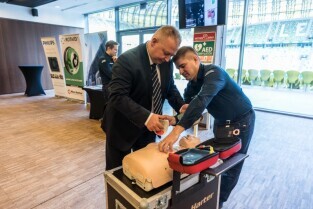 Dzisiaj firma UPS przekazała Energa Stadion Gdańsk oraz Ergo Arena defibrylatory. Próby reanimacji i użycia defibrylatora w wykonaniu Andrzeja Bojanowskiego, Wiceprezydenta Gdańska.