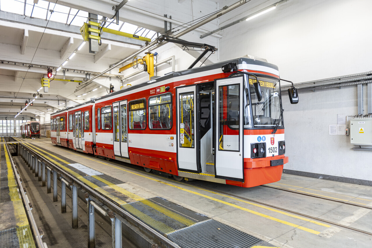 Gdańsk. W zajezdni tramwajowej na ul.Wita Stwosza trwa dekorowanie specjalnego tramwaju na Halloween.