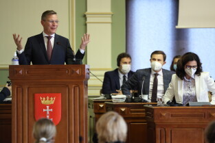 Gdańsk.Delegacja z Bremy na XXXIX sesji Rady Miasta Gdańska. Nz. Prezydent Gdańska Aleksandra Dulkiewicz.