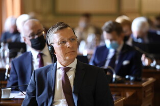 Gdańsk.Delegacja z Bremy na XXXIX sesji Rady Miasta Gdańska. Nz. Cezary Śpiewak-Dowbór.