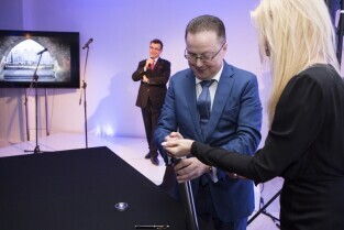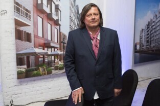 Gdańsk, północny cypel Wyspy Spichrzów. Wmurowanie kamienia węgielnego pod inwestycję Deo Plaza. Nz. inwestor Zbigniew Nowak