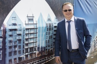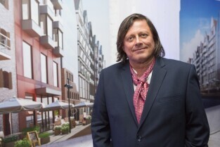 Gdańsk, północny cypel Wyspy Spichrzów. Wmurowanie kamienia węgielnego pod inwestycję Deo Plaza. Nz. Architekt Marcin Kozikowski