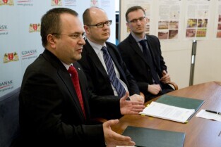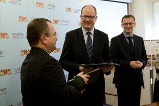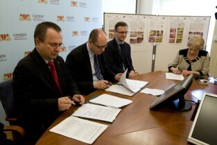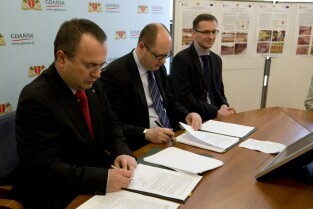 Gdańsk, Urząd Miejski. Podpisanie umowy na dofinansowanie projektu "Ochrona wód Zatoki Gdańskiej - budowa i modernizacja systemu odprowadzania wód opadowych w Gdańsku".