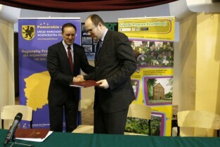 Pospisanie umowy na dofinansowanie z funduszy unijnych rewitalizacji Dolnego Miasta, w tym ul. Łąkowej. Gdańsk, Gimnazjum nr 9. Nz. od lewej: Marszałek Woj. Pomorskiego Mieczyław Struk, Prezydent Gdańska Paweł Adamowicz